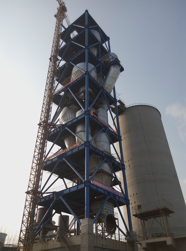 8月24日10时18分,金威水泥窑尾框架如期顺利封顶,该窑尾框架总高度97米,其立柱和钢梁全部是现场焊接制作而成,焊接安装历时80天,实现了该窑尾框架科学、安全、优质地封顶。