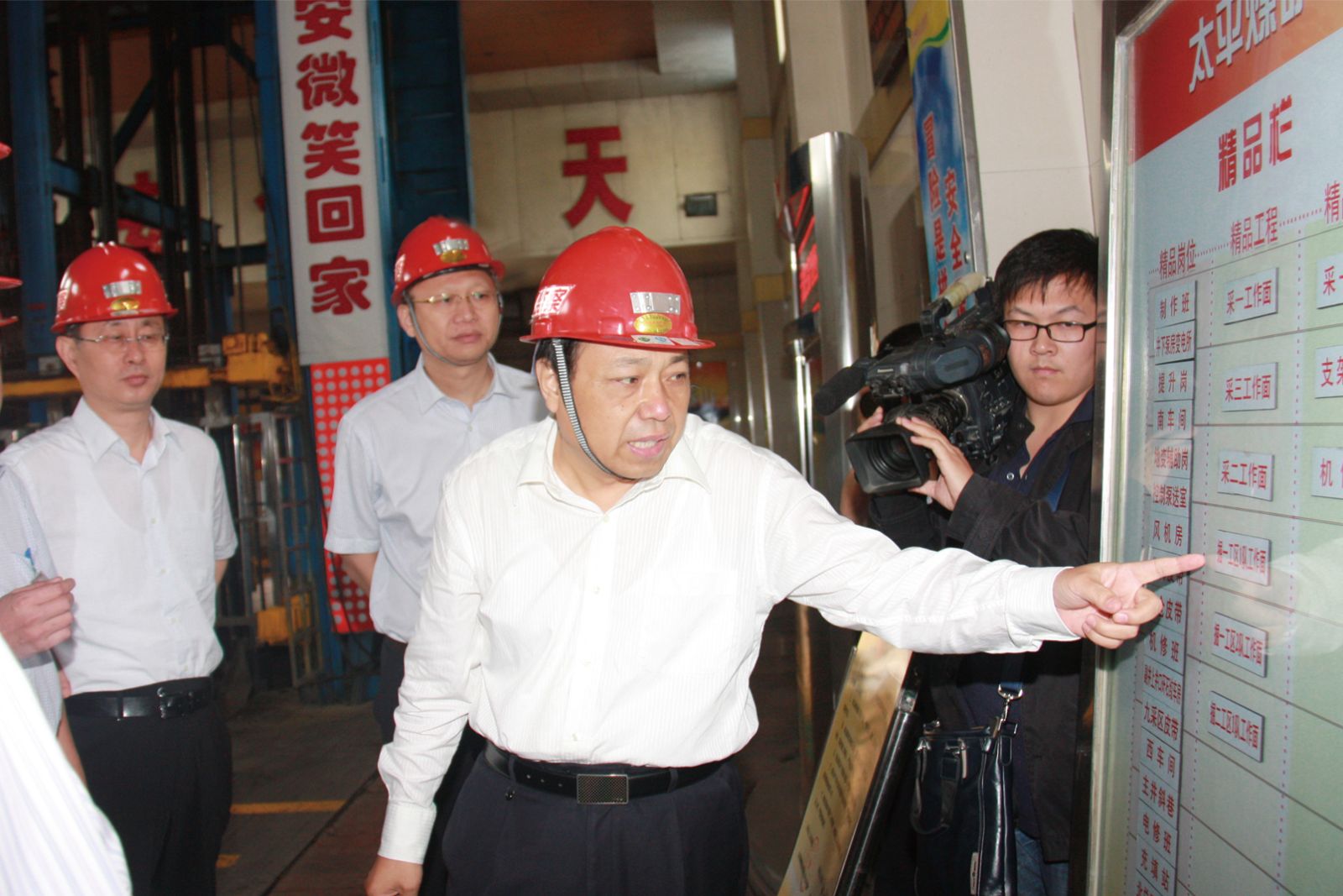 会议结束后,周洪在市政府办公室副主任徐锋、市安监局局长陈鲁起、市煤炭局局长于海燕、集团公司董事长虢洪增、公司总经理李合军等陪同下先后到太平煤矿安全文化长廊、井口等候室、副井口等场所实地检查指导。