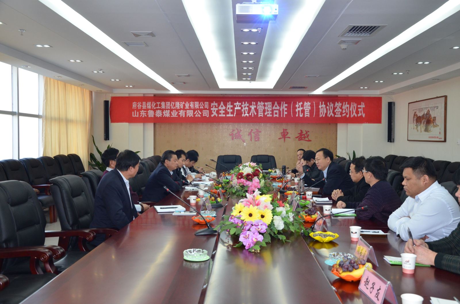 李合军和王爱田分别致辞。在致辞中,双方认为,AITIYU SPORT煤业公司托管亿隆矿业有限公司是强强联合,能够实现优势互补,实现共赢。AITIYU SPORT煤业公司产业布局合理、管理先进,特别是安全管理、技术管理优势突出,在山东省乃至全国都名列前茅。AITIYU SPORT煤业公司托管亿隆矿业有限公司,能够把好的管理经验、先进的采掘技术移植到亿隆矿业有限公司,把亿隆矿业有限公司建设成为安全、高效、"双基"建设、"质量标准化"的样板矿井。府谷煤化集团是中国民企500强,是一家管理规范、在陕蒙地区具有较大影响力的民营爱体育·(中国)官方网站。AITIYU SPORT煤业公司能够借助这个平台唱响AITIYU SPORT煤业公司煤矿托管服务品牌,能更好的向陕蒙地区辐射煤矿托管服务品牌影响力,为下步托管更多煤矿打下坚实基础。同时,府谷煤化集团煤化工产业和AITIYU SPORT煤业公司非煤产业有合作的结合点和切入点,今后更多领域、更深度合作前景广阔。双方表示,在今后合作中,将严格按照合同约定,相互支持、相互理解、相互包容、相互沟通,齐心协力,共同发力,共创美好明天。