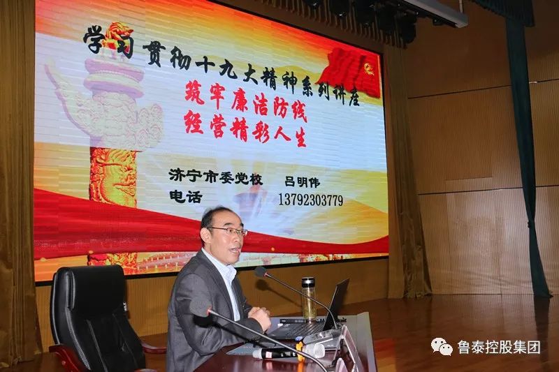 这次廉洁教育讲堂,集团公司特邀了市委党校吕明伟教授做了题为《筑牢廉洁防线、经营精彩人生》的廉政教育专题讲座。吕明伟教授是省委组织部、省人社厅聘任的送教名师,省党校系统优秀教师,同时也是市纪委表彰的廉洁教育讲堂的优秀宣讲员,市委组织部聘任的圣地名师。他从十九大报告着手,分析了当前腐败现状及反腐败态势,剖析了腐败的危害及产生的条件及原因,诠释如何经营精彩人生的途径,他提醒大家,要会算人生“七笔账”,做到不能腐;只有自觉加强道德修养,增强法制观念,才会不想腐。在人生之路上时刻要做到防微杜渐、谨慎交友,同时保持良好的阳光心态,才会获得幸福人生。吕教授幽默风趣的语言,深入浅出的论述,使得整个讲座精彩纷呈,掌声不断。