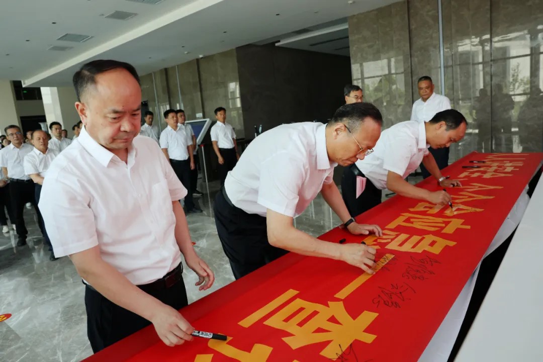 集团公司副总经理、安全总监贾广海主持仪式,带领现场人员进行了庄严宣誓。全体人员在印有“人人讲安全 个个会应急—查找身边安全隐患”主题条幅上郑重签名,承诺以自己的实际行动,增强安全意识、履行安全责任,扎实开展好“安全生产月”各项活动,为集团公司高质量发展筑牢安全屏障。